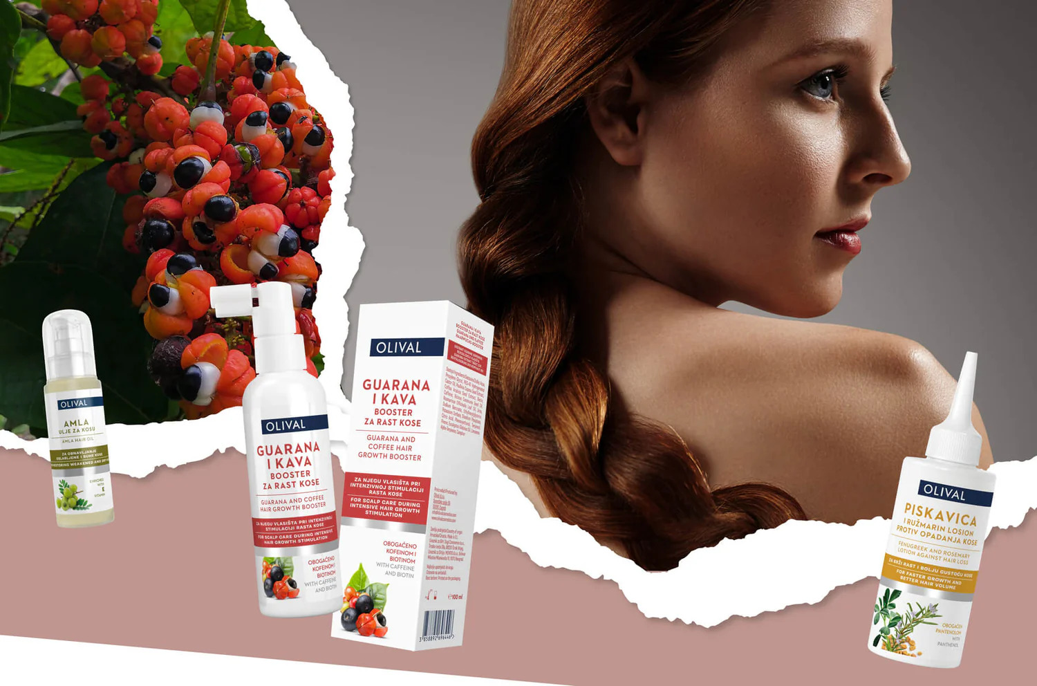 Guarana patrí medzi rastliny bohaté na prirodzený kofeín, ktorý je cenený pre svoje stimulačné účinky. Extrakt z guarany sa využíva v kozmetických formuláciách na podporu mikrocirkulácie pokožky hlavy a posilnenie vlasových korienkov. Pomáha znižovať nadmerné vypadávanie vlasov tým, že spevňuje folikuly a zlepšuje prísun živín.