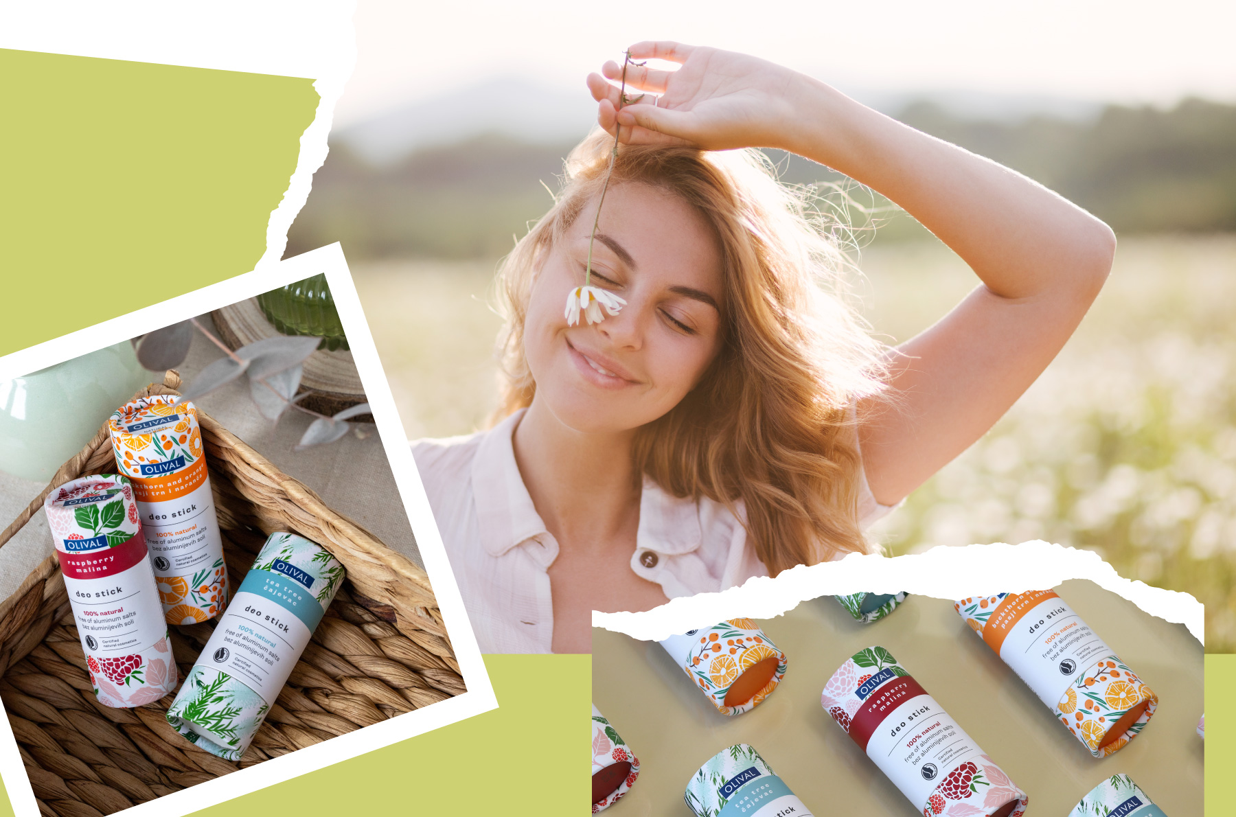Az Olival természetes dezodorok szódabikarbóna, alumíniumsók és alkohol nélkül készülnek, így gyengédek a bőrhöz. Helyette tápláló olajokat – például kókusz- és makadámiaolajat –, bambuszkivonatot és sheavajat tartalmaznak, amelyek együtt ápolják a hónalj érzékeny bőrét és tartós frissességet biztosítanak.